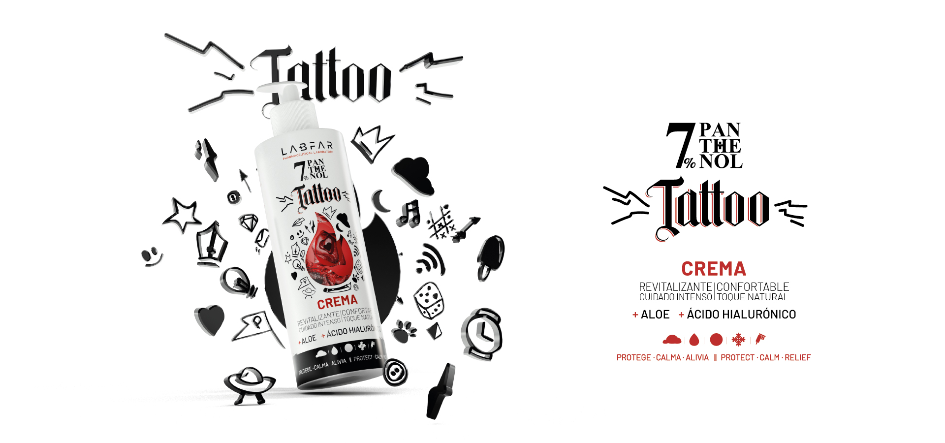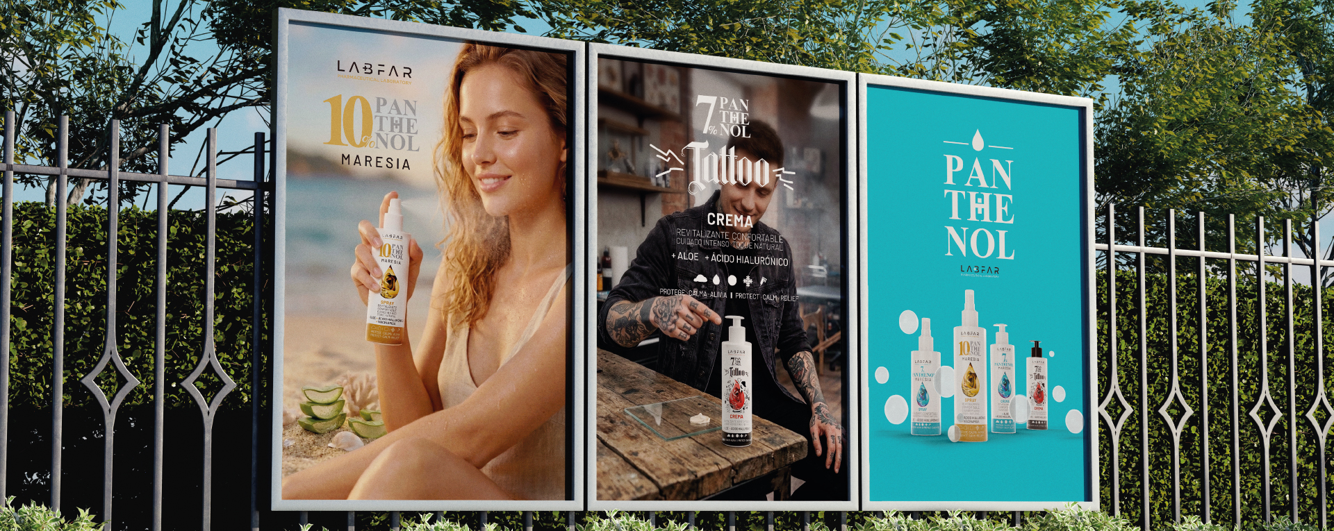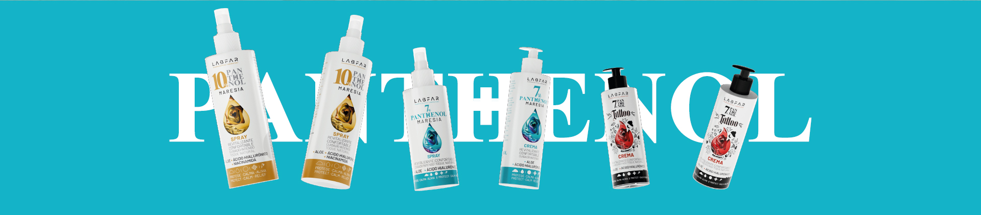 The system extends across ranges such as Panthenol Maresia, Tattoo and 10%, each with a distinct character while maintaining a cohesive brand core.